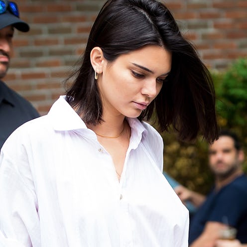 One thing we love about Kendall Jenner (aside from her general flawlessness) is her fondness for wigs. The supermodel never seems to bat an eyelash at donning a dramatic faux-hair look. Her latest move, for instance, seems to be a nod to an iconic movie character—remember Uma Thurman as Mia Wallace in Pulp Fiction? Well, she's been reincarnated by Kendall herself via her latest wig. Fans of the film will recognize the supermodel's jet-black blunt bob with bangs pictured in celeb hairstylist Jen Atkin's recent Instagram post. Take a look at her drastic switch-up below.