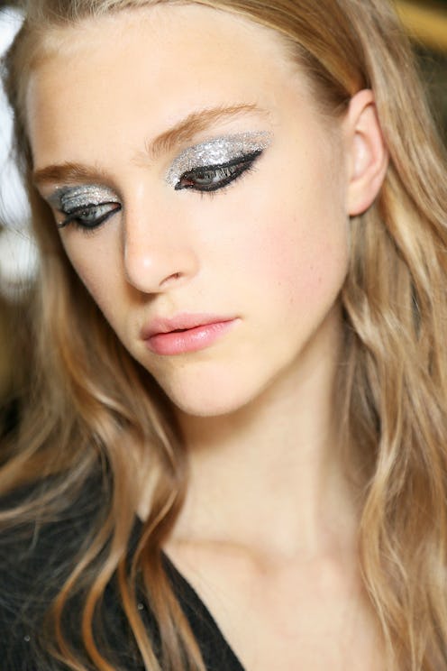 Here’s where it gets tricky: We love a perfectly glittered cat eye, but not when it’s paired with shiny eye shadow and loads of sparkly mascara. Keep eyelids matte and use a glitter liquid liner to create a thin line that wings out at the corners. For an even bolder statement, try layering a classic black wing over glitter liner.