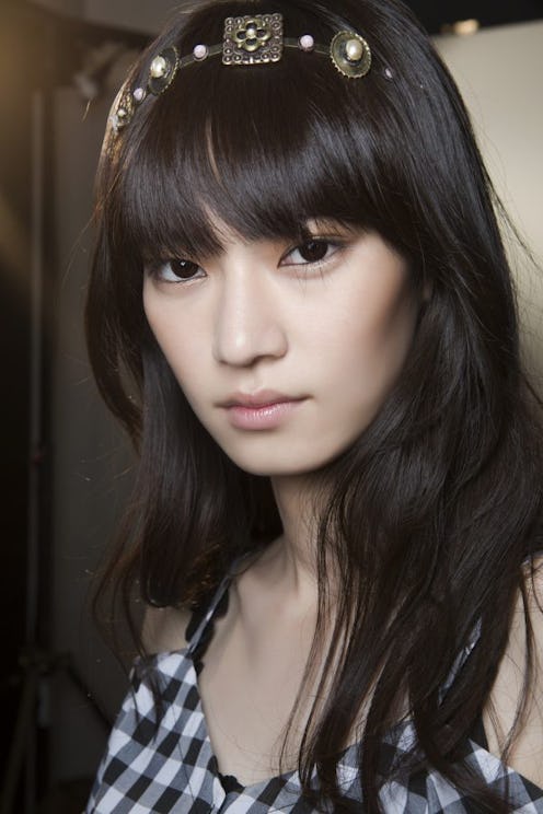 Soft velvet and matte grosgrain ribbons were the most popular way to dress up simple hairstyles on the fall runways. Next time you resort to a basic pony, slap on a bow to raise your cool-girl factor with almost no effort.