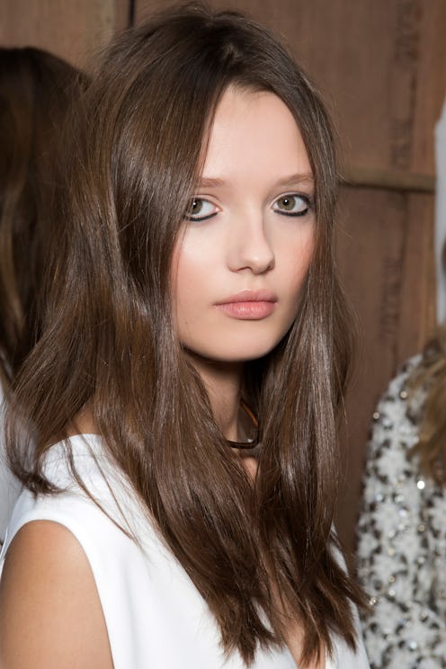 Keep the rest of your face fresh and dewy, then pat on a metallic silver shadow to just the center of your lids. It'll give you that extra twinkle your eyes are missing.