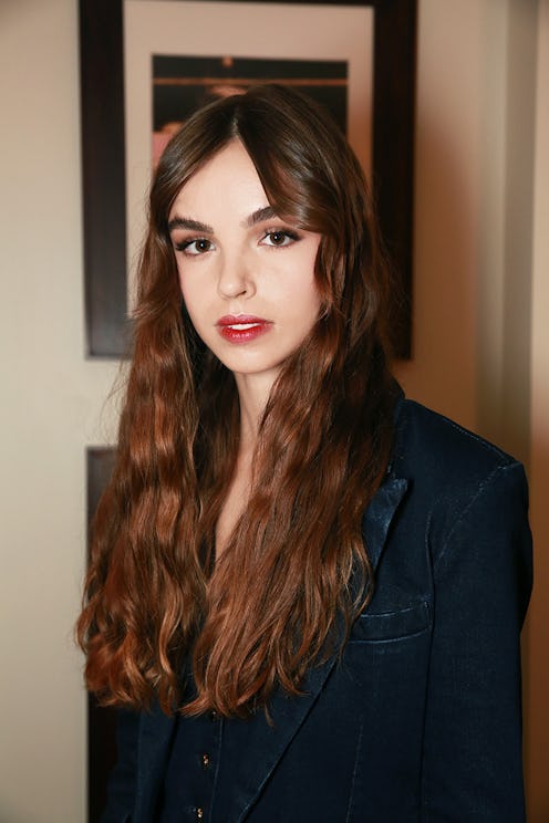 Lead hairstylist and John Paul Mitchell Systems editorial director Lucie Doughty created effortlessly chic and beautifully undone waves to complement Rachel's collection. For depth and volume, each model wore Deux Luxe² clip-in extensions. Clip-in bundles can be purchased in 15 different options with up to three beautifully blended highlights and lowlights in one package. To recreate the look at home, start with a center part, then section hair starting at the nape of the neck. Prep hair from bottom to top with Paul Mitchell's InvisibleWear Pump Me Up volumizing texture powder. Create a single three-strand braid with loose hair and secure with a clip for control, leaving ends free.