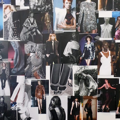 It’s no secret Rachel Zoe is inspired by 1970’s glamour, frequently referencing the likes of Bianca Jagger in her mood boards. This season she wanted to celebrate the complexity of the modern woman, speaking in particular to the duality of femininity and masculinity that lives within all of us, so who better to look to than David Bowie? The ultimate glam-rock icon was a master of high-octane dressing, blending glitz with grit and doing it all with head-turning flair. Here, take a peek at her mood board as well as some of the sketches for the collection.