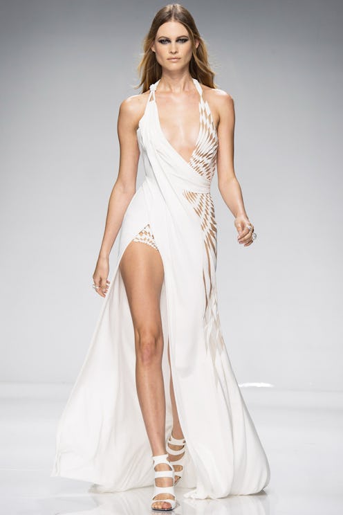 We know it’s Monday morning, but you really have to see these ultra-sexy couture gowns—courtesy of Donatella Versace. Her Spring 2016 Couture collection was brimming with glamorous options for all the starlets in the midst of awards season (which we’re covering in real time—stay tuned for the SAG Awards this Saturday!). With up-to-there slits, strategic midriff-exposing cutouts and daring sheer fabric with peekaboo underpinnings, these racy numbers are certain to spice up your day at the office! Here, the 10 best red-carpet-ready dresses hot off the runway.
