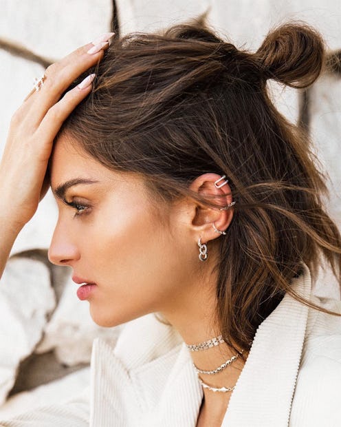 Earrings have no doubt made a huge comeback in the last couple of seasons, becoming the must-have accessory to pair with any ensemble. Head-turning statement drops, asymmetrical pairs and oversize hoops are the new essentials in every fashion girl’s collection, so now, of course, we’re looking for the next big style that’s positioned to take over. Enter the orbital cuff—a more edgy rendition of the regular cuff, with a wider shape that surrounds the whole ear, giving the illusion it’s pierced through the conch. From sleek, minimalist metal silhouettes to glamorous diamond-encrusted designs, the orbital is both cool and sophisticated, whether it’s worn with a pantsuit for work or denim and an off-the-shoulder top for the weekend. Shop our edit ahead to score one for yourself.
