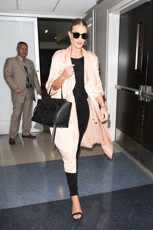 Celebrity airport style is one of our favorite categories to decode—as there’s an underlying off-duty sensibility to each look, these outfits are often the most realistic to emulate. And let’s be frank: Ladies like Rosie Huntington-Whiteley know they’re going to be papped the second they exit an aircraft at LAX, so their ensembles consider comfort while incorporating thoughtful details that elevate it to photo-ready (and thus copy-worthy) territory. In case you were under the impression there’s only one way to dress for airport (or another similarly casual outing), take heed—a host of our favorite fashion girls demonstrate a variety of plane-ready uniforms to suit your personal preferences. Here, ID your travel style muse and dress accordingly for your next outbound flight.