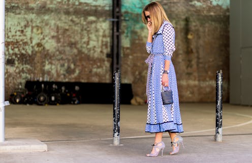 A wrap dress reliably enhances the figure by cinching at the waist for a feminine yet age-appropriate result. Punchy hues and prints make them ideal for summer.