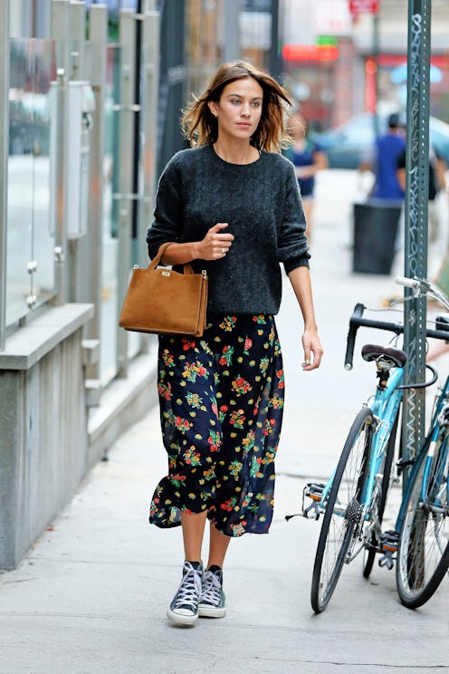 Not quite ready to say good-bye to your favorite summer staples? Alexa Chung proves that come lower temperatures, you don’t have to pack away your trusty separates just yet. For an afternoon on the town, the It girl teamed a calf-grazing dress with a chunky sweater and sneakers, yielding the perfect off-duty ensemble. The best part about repurposing this breezy silhouette is that when teamed with a knit, it could almost pass as a midi skirt. Just add heels and a structured satchel for an effortlessly chic work outfit. Below, our interpretation of Alexa’s look best suited for the weekend ahead.