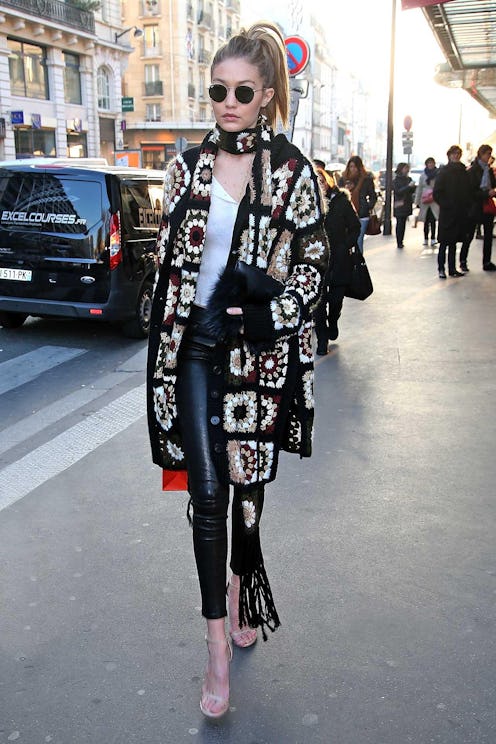 With a slew of spring trends that’ll be hitting store shelves soon (yes, some even arrive in January), it’s never too early to start sartorially prepping for the upcoming season. What’s one we’re excited to be sporting when warmer weather checks in? Colorful knitted crochet pieces as seen in Tommy Hilfiger’s spring 2016 collection. While the brightly hued, beach-inspired numbers aren’t currently available you can totally invest in one now by layering over winter essentials, inspired by our eternal girl crush Gigi Hadid. Paired with skinny leather pants, scarf and furry clutch, Gigi has effortlessly adapted the cardigan into something that unexpectedly belongs in both the cold and warmth. Ahead, see how to style it for now and later.