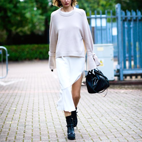 Nearly as ubiquitous as denim, slip dresses have become the frock du jour for the fashion set. From daytime to dressy, the slinky staple is not only sartorially sound but wonderfully versatile: the fluidity of silk and satin iterations deftly balance structured separates when layered under or over poplin shirts, knits and shell tops. With high-shine en masse for fall, the hero item is the ultimate layering essential when temperatures start to dip from work (yes, really!) to weekend whether you covet a prim, preppy or pragmatic look. Unconvinced? Here, four fresh ways to layer a slip dress like a fashion-girl.