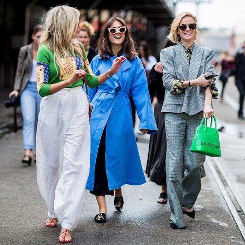 Wide-leg pants give this feminine suit streetwear appeal.
