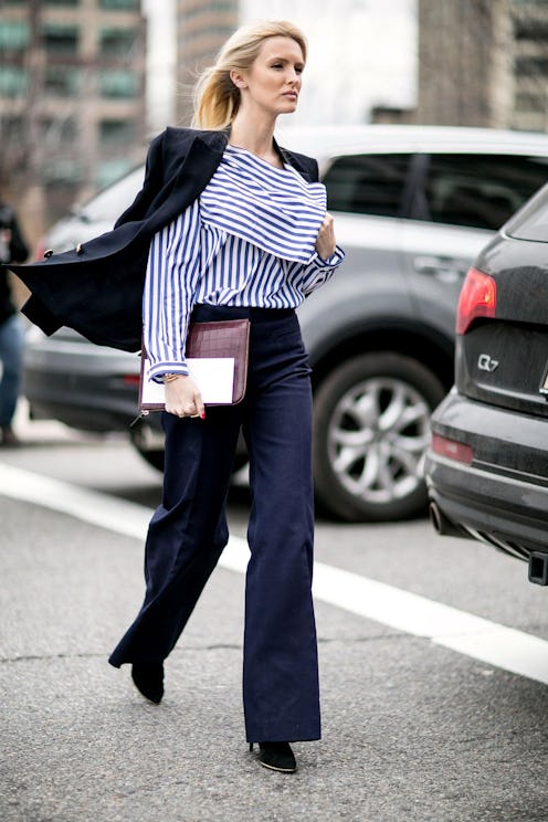 While a shift dress is great for busy mornings, a striped shirt communicates the air of professional preparation you need to exude on a Monday. Whether it’s pinstripe, wide or horizontal, this linear print not only matches staples you already own—it’s also undeniably chic and flattering on any body type. When paired with the right proportions and figure-enhancing pieces, it promises to transform a boring monochromatic look into a polished, elevated ensemble. Ahead, get our style tips on how to upgrade this classic top for your unique frame.