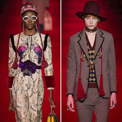 Designer Alessandro Michele took the helm at Gucci a year ago, and in a short time he’s captured the attention of editors, street-style stars and It girls alike. Today, he unveiled the Fall 2016 men’s collection in Milan (which included a handful of women’s looks) and we were stopped dead in our tracks by the gorgeous appliqués, reinvented iconic Gucci bags and embroidered sneakers, to name a few highlights. Here, 5 noteworthy trends to get on board with stat.