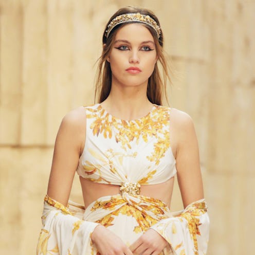 Bringing Greece to Paris, Karl Lagerfeld debuted his Cruise 2017/18 show for Chanel and made one very clear statement with his mythological designs: gladiator sandals are back. Shown in a rainbow palette from bright yellow to soft peach to turquoise to gold, the lace-up sandal looks elegant as ever, and was paired with everything from billowing caftans to structured suits. Basically? We’re running out right now to scoop up a pair. Here, our favorite gladiator looks from the show to kick off cruise season.