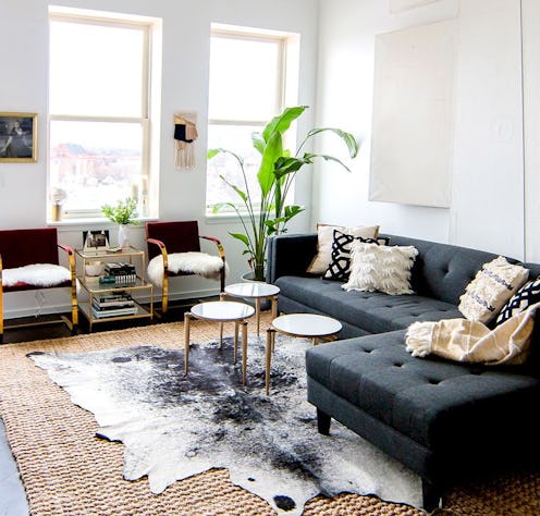 A jute rug and animal hide are a match made in home-decor heaven, plus you're covering far more floor than your expensive animal hide would alone. Natural wood accents and potted plants only amplify the earthy feel.