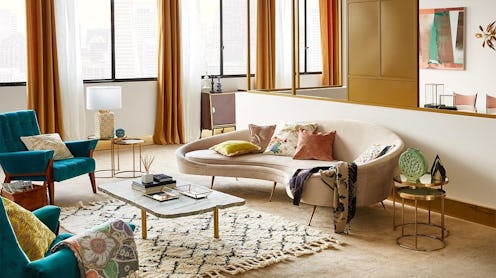 "Adding a jewel-tone accent color to a space can really change the mood," says Kate Albrecht of Mr. Kate. "I love these rich blue velvet curtains as a way to bring in a luxurious textile and color to a bedroom. Add one blue throw pillow on your otherwise neutral bed or couch and you've got a whole new look for very little money!"