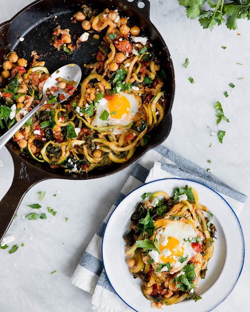 Harissa And Kale Zucchini Noodle Skillet