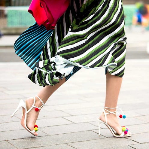 Eye-catching embellishments are everything when it comes to footwear this spring. From candy-colored pom-poms to multilayered gems to metallic fringe, bold adornments abound. And while they stun on the street-style scene, they can feel overcomplicated in real life. Our solution? Keep it simple. Choose your statement shoe, and wear it with your favorite jeans, a classic T-shirt, a cool handbag and voilà!—instant chic. From flatforms to textured mules, here are nine of our favorites. Be prepared to field an endless stream of compliments.
