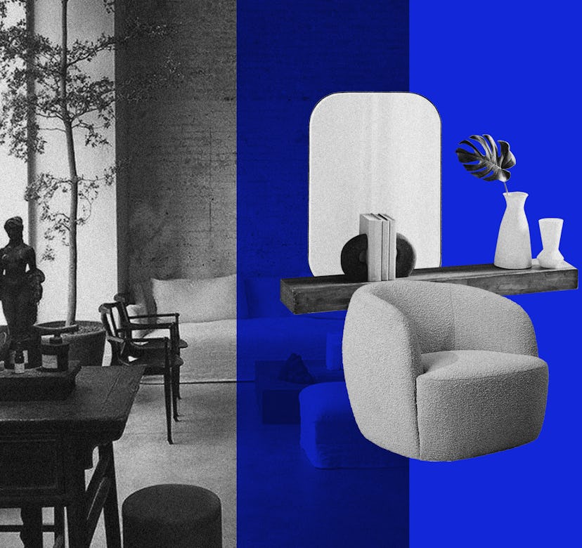 For instance, images containing the color blue signify a client's need and desire for space and boundless freedom. Based on this information, Home Being suggests way to channel this desire in the home via open floor plans, fixtures and shelves that give a "floating feel," and wide, rectangular-shaped furniture like long bookcases and coffee tables. While imagery with soft colors and elements signify a person with warmth and empathy who wants to attract warmth and empathy in their lives. In the home, this personality manifests in plump cushions (think boucle couches), and rounded furniture and edges.