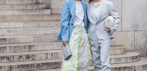 Poland-based trendsetter Renia Jazdzyk, notes that tie-dye is the first trend she'll be trying for spring. "We can wear it on tops, skirts, dresses, trousers, hats. It's such a fun, colorful, and easy to play with trend," she notes. When adding the colorful trend into your wardrobe, she suggests keeping things simple: "My favorite combo is a tie-dye top, tapered trousers, and heels. Simple yet so stylish."