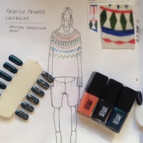 Last year JINsoon made us swoon with its first-ever collab with Tibi, and now we can’t get enough of the fabulous hues they've created with designer Tess Giberson, released in August. Known for her creative use of textures and fabulous prints, Giberson teamed up with the nail polish brand's founder Jin Soon Choi to create an entire collection showcasing iridescent shades meant to shift and change depending on the angle and lighting.