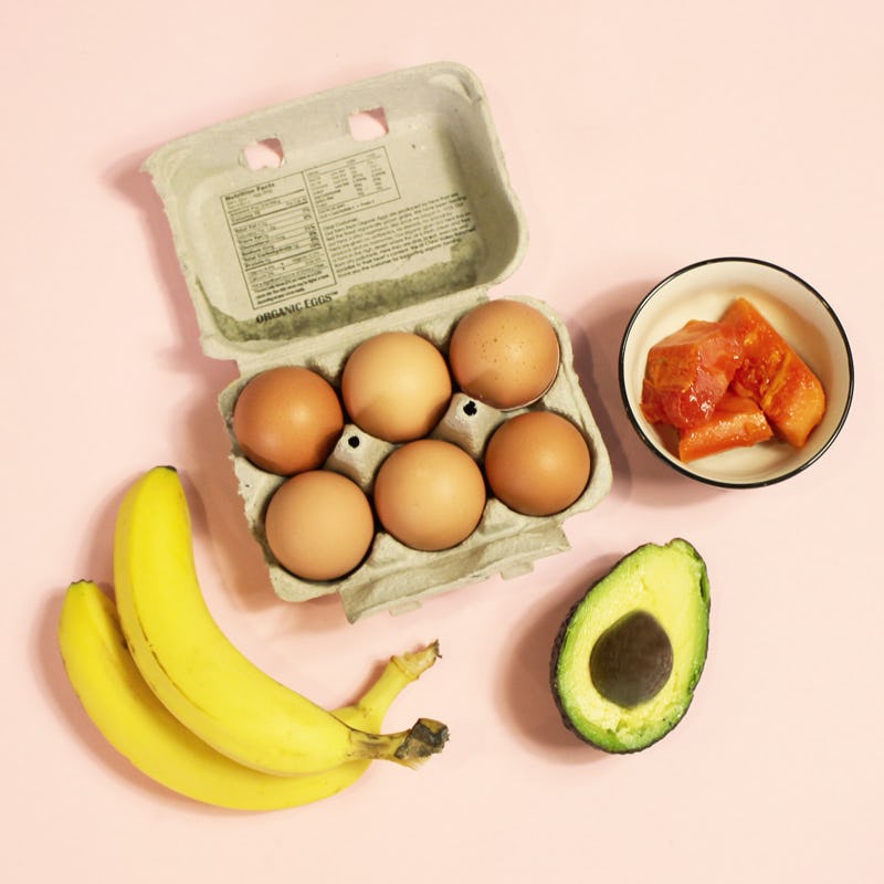 What you'll need: 1/2 banana, 1/2 ripe avocado, 1 egg.