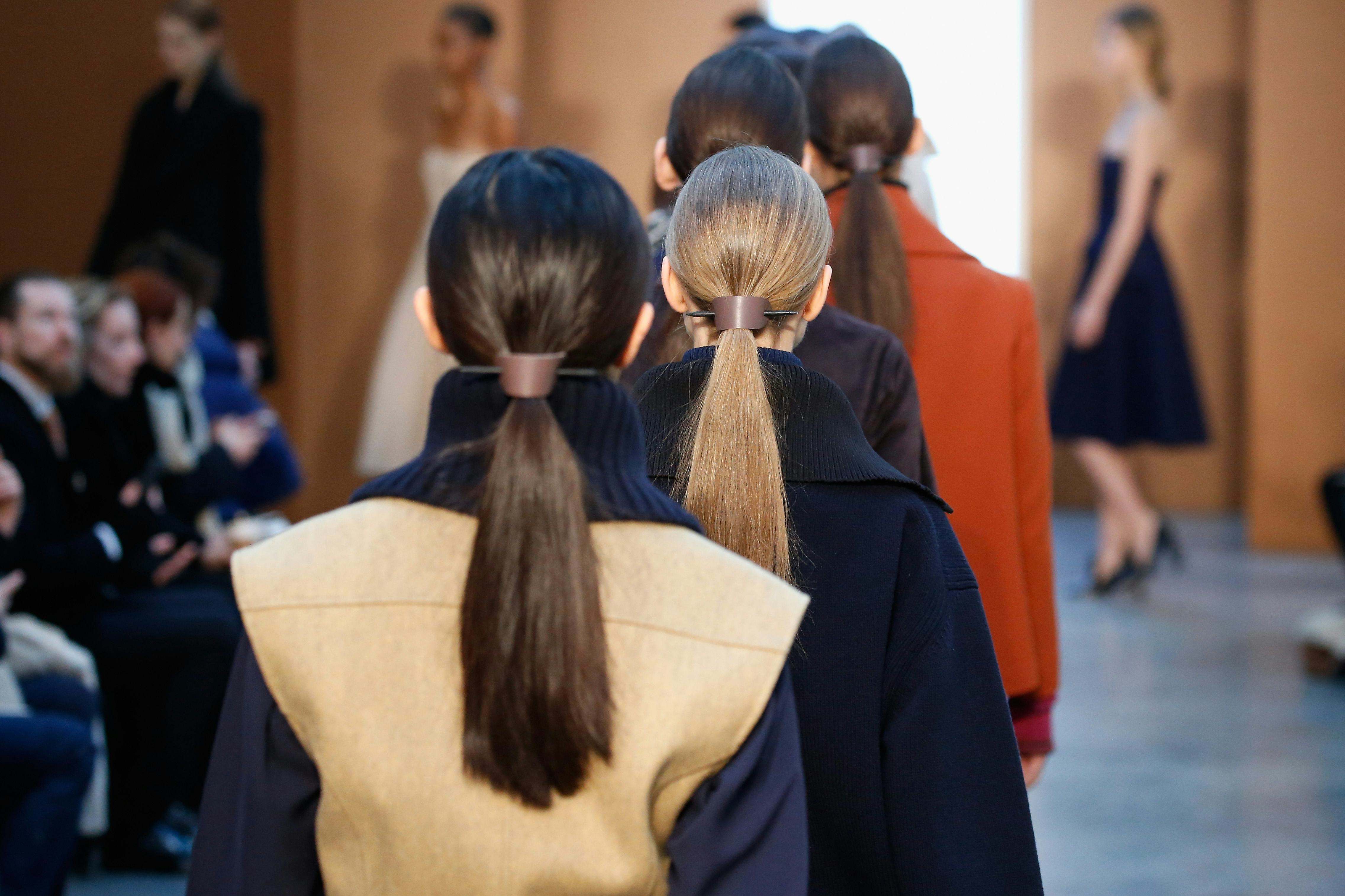 Having a terrible, horrible, no good, very bad hair day? We found the ultimate cure at the Derek Lam show. Whether your hair is ultra-dry or just falling flat, a leather clip straight out of the ‘70s is the perfect way to hide your unruly mane behind an on-trend style.