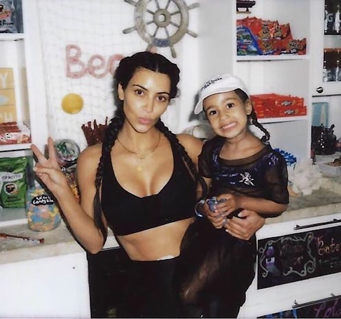 Kim Kardashian West is known for basically being the queen of all things glam. Her makeup and hair are always done to the nines, and she now has a beauty empire under her belt that isn’t slowing down anytime soon. Apparently, the apple doesn’t fall far from the tree, as it seems her daughter North West is a budding beauty guru herself. Kim says she often catches her daughter playing with her aunt Kylie’s lip kits and has creeped into makeup artist Mario’s kit on more than one occasion. But that doesn’t mean that Kim is actually letting North leave the house in makeup just yet (the kid is only four!). In a recent video tutorial with YouTube star Desi Perkins, Kim shares that she thinks she’ll let North start wearing makeup when she’s 12, which is around the same time she started testing the waters, as well. She goes on to confess that she experimented with turquoise shadows and matching strands of faux turquoise hair that she’d clip in for a monochromatic look—those were the days. Watch the video below for their full chat and makeup transformation.