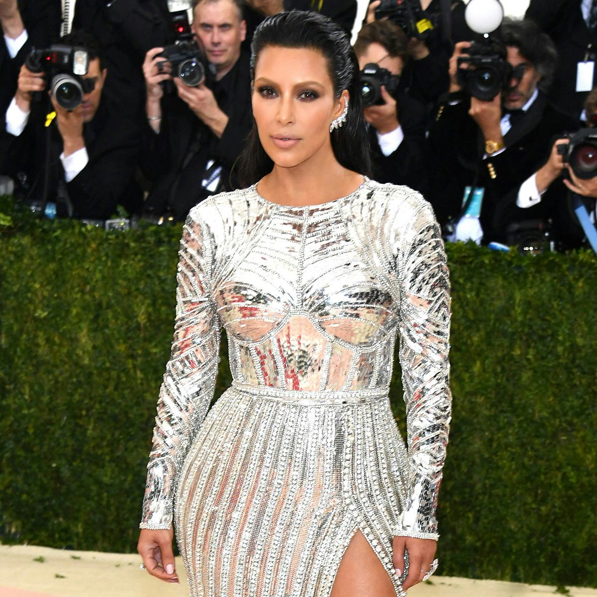 Throughout her time in the spotlight, Kim Kardashian has experimented with a variety of hairstyles and colors. She’s rocked everything from honey-hued highlights to platinum blonde strands, as well as Cher-length hair and a series of shorter ‘dos. Most recently Kim’s been spotted in a much-talked about sleek lob, resembling the likes of none other than Cleopatra. This past Sunday however, Kim experimented with a new non-permanent hair color, and of course, she totally pulled it off.