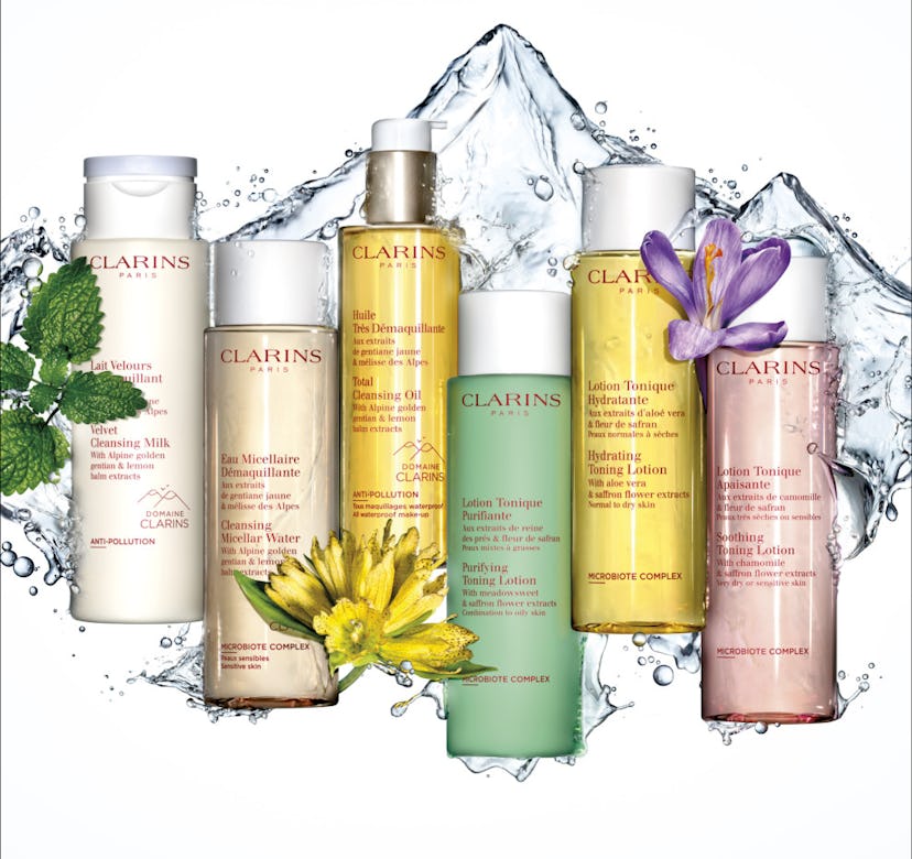 As for the aforementioned new products, there are a lot. There's a collection of seven cleansers and three toners added to Clarins' iconic lineup, as well as the hero, the new Total Eye Lift, which launches on Feb. 8. The cleansers include three aimed at makeup removal — the Cleansing Micellar Water for a fast fix, the Velvet Cleansing Milk for a gentle cleanse, and the Total Cleansing Oil to cut through heavy-duty makeup. But that's not all. There's also the Purifying Gentle Foaming Cleanser, with meadowsweet, a derivative of salicylic acid for combination to oily skin, the Hydrating Gentle Foaming Cleanser, infused with aloe vera for normal to dry skin, the Soothing Gentle Foaming Cleanser, which uses calming chamomile and organic shea butter to nourish very dry and sensitive skin, and the Gentle Renewing Cleansing Mousse, which uses tamarind pulp extract (containing AHAs) to gently exfoliate and brighten, for all skin types.