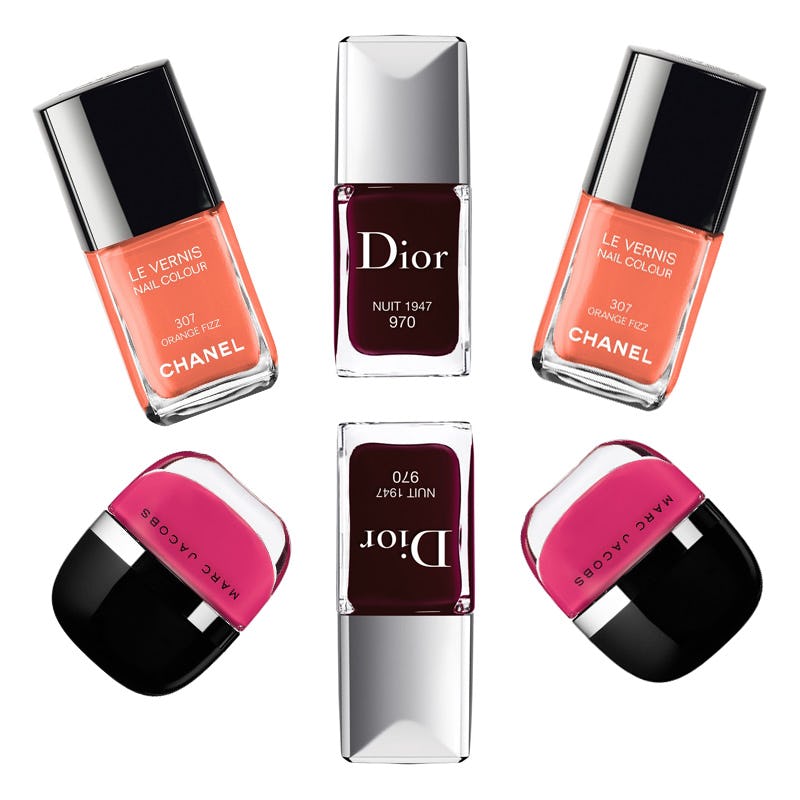 Pair sculptural gold jewels with bright coral polish for an incredibly modern combo.