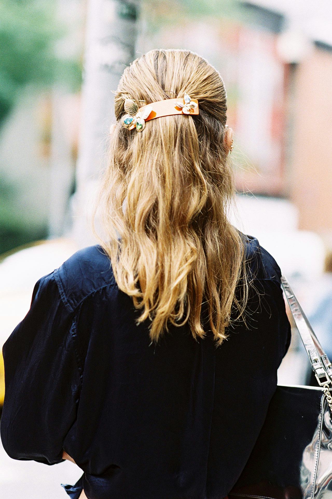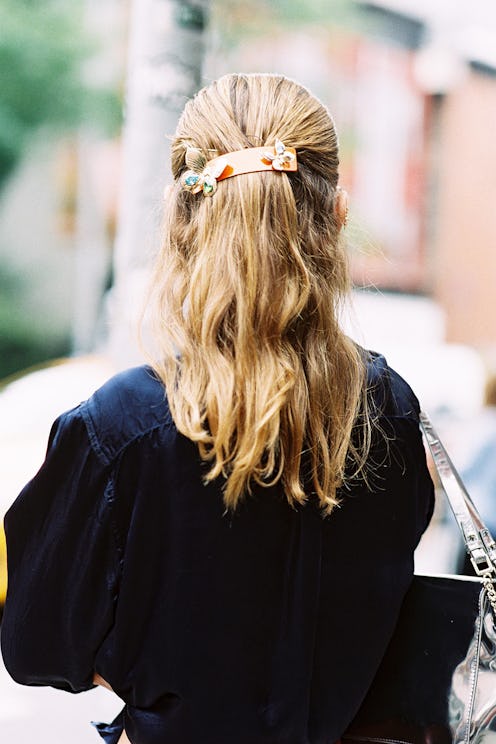Still working with Wednesday’s blowout? Been driving with the windows down? There’s a reason why the mantra “Messy Hair, Don’t Care” continues to thrive on the Internet. That whole wash, style, wash, style routine just seems like a whole lot of work at the end of a long week. Luckily, there’s a way to rock day-three (or just plain ‘ol messy) hair without resorting to a complicated braid or too-basic bun. Enter: the cool-girl barrette. Here, three ways to try the trend. Once you’ve got one, just sweep a large section of hair back or to the side for a gorgeous off-duty look.
