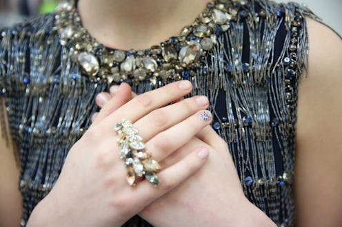 Don't be afraid to play up the iridescent accents on this carryall with a matching nail color.