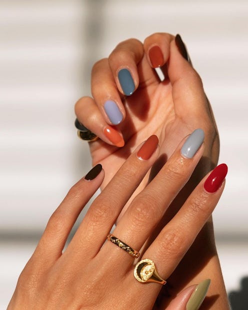 First up? After appearing all over Instagram feeds for the last six months, “colored French manicures are here to stay,” says Evelyn Lim, chief educator at Paintbox. Similarly, Lim predicts there to be a few unexpected twists in our future, explaining, “[Clients] are requesting crisp French manicures and wavy designs alternating in shapes and colors.” Playing with a design is ideal for trying out the best new fall color trends, and keeping your manicure feeling extra special — but a monochrome nail is also timeless if that’s more your speed.