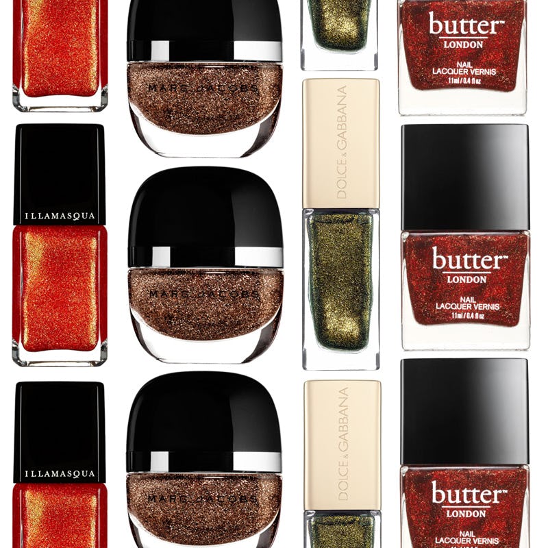 Glitter may be most commonly associated with the holidays, but life is short—why should Christmas and New Year’s have all the fun? We suggest livening up the weeks leading up to the festive season with some much-needed sparkle by way of your manicure. There are loads of fall nail colors that pack a mean shimmery punch without veering too far into holiday territory. Here, 11 of our faves.
