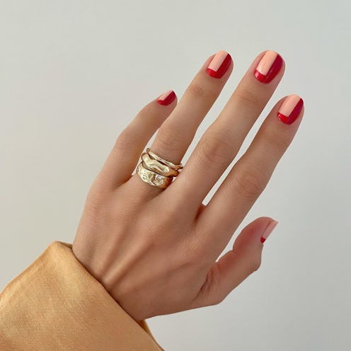 There are countless variations of this fan-favorite nail look out there. This month, incorporate red, pink, or both to really make the mani pop. You can play around with shapes, line size, and color blending.