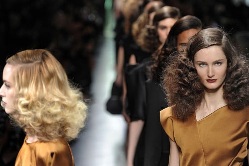 The '40s-inspired ringlets of Bottega Veneta's fall 2013 show are definitely our go-to for a chic, party-ready 'do idea. To create a like-minded hairstyle, use a three-barrel iron, which is perfect for creating retro "s" shaped waves. If you're feeling daring and want to recreate Bottega's major manes to a T, coat your locks with a volumizing mousse before curling and brush out afterwards to achieve the same full-bodied and textured look.