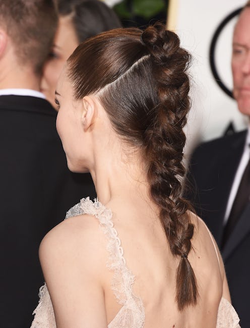 While we can always count on celebs to step up their beauty game for the Golden Globes, one look in particular stood out to us. Rooney Mara topped our favorites list with her half-up ponytail-braid hybrid (or ‘braid-hawk‘ as Rachel calls it), that straddles the perfect mix of modern meets feminine. Here, we’re showing you how to get the look at home without having to hire a professional glam team. Whether you’re planning on walking a red carpet this season, are headed to a special event this weekend or are just looking to step up your office beauty look, this stunning braid is guaranteed to turn heads.