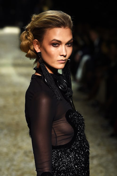 “Sex” was the word used most often backstage to describe the inspiration for the sultry hair and makeup looks done on of-the-moment models including Gigi Hadid and her sister, Bella, at Tom Ford’s Fall 2015 fashion show last night in LA. Karlie Kloss and Joan Smalls were among the other catwalk stars who opted to skip the first day of London Fashion Week to be there for the legendary designer’s rare West Coast show. A messy cross between a French twist and a braided bun was the hairdo that complemented the sequin gowns, fringe dresses and head-to-toe denim that came down the runway (while Hollywood’s biggest names, including Gwyneth Paltrow and Julianne Moore, looked on from the front row). We have the 411 on how to get the spectacular show’s morning-after sexy ‘do in 5 easy steps.