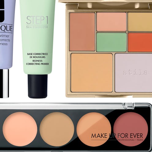 Unless you have a degree in fine arts, color correcting is somewhat baffling. Every beauty supply store is filled with options ranging from green to peach to purple where previously there had only been skin-toned products. Rather than assume there is a growing portion of the population with a green complexion (there is not), get on board with these genius products that can do everything from conceal dark circles to redness. First things first? Learning which hues work best with your complexion. For example, peach-tone concealers work best to cover dark spots on fair skin tones, while those with deep skin tones have to opt for bright orange instead. Green and yellow concealers cater to every skin tone seeking to correct redness that might be a result of acne or rosacea. Peruse this guide to find which products best address your concerns and suit your skin tone.