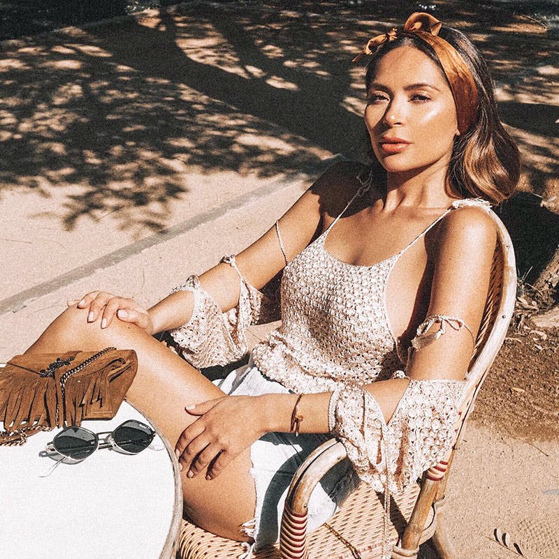 First of all, it smells amazing—it's a vacation in a bottle thanks to the vanilla and floral accents. We went with the Brown Sugar shade and used a flat kabuki brush to apply it on our shoulders, collarbone arms and legs. We then dabbed a teeny bit onto our cheek bones (and emphasis on teeny because a little goes a long way). A major plus is that it doesn't need any drying time since it absorbs quickly like a moisturizer or serum!