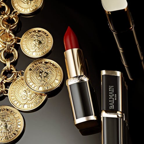 Update (July 28): L’Oréal Paris just shared a closer look at one of the lipstick shades to come. A gorgeous rose gold shade with a matte finish will be part of a 12-piece collection launching in September. There’s no word on what the price point will be, but the tubes will be available at Balmain boutiques as well as anywhere L’Oréal Paris makeup is sold. As it was reported back in May, three shades will be part of a special “jewel edition” carried exclusively at Balmain stores.