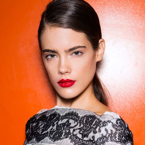 By far the easiest way to turn heads with little effort is a bright red lip. Use a highly pigmented liquid lipstick to make your pout pop and pair it with messy-chic brows. Done and done!