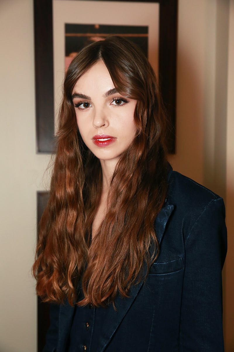 Lead hairstylist and John Paul Mitchell Systems editorial director Lucie Doughty created effortlessly chic and beautifully undone waves to complement Rachel's collection. For depth and volume, each model wore Deux Luxe² clip-in extensions. Clip-in bundles can be purchased in 15 different options with up to three beautifully blended highlights and lowlights in one package. To recreate the look at home, start with a center part, then section hair starting at the nape of the neck. Prep hair from bottom to top with Paul Mitchell's InvisibleWear Pump Me Up volumizing texture powder. Create a single three-strand braid with loose hair and secure with a clip for control, leaving ends free.