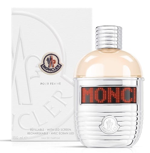 Of course, Moncler perfume has an extra unique component that undoubtedly stands out in the saturated global fragrance market. Both bottles feature a rechargeable LED screen with an illuminated message panel that you can customize via a Bluetooth-powered smartphone app. Pretty epic, right? The fragrances are likely to be a major hit for the holidays, because who wouldn’t want perfume featuring a special message from a loved one?
