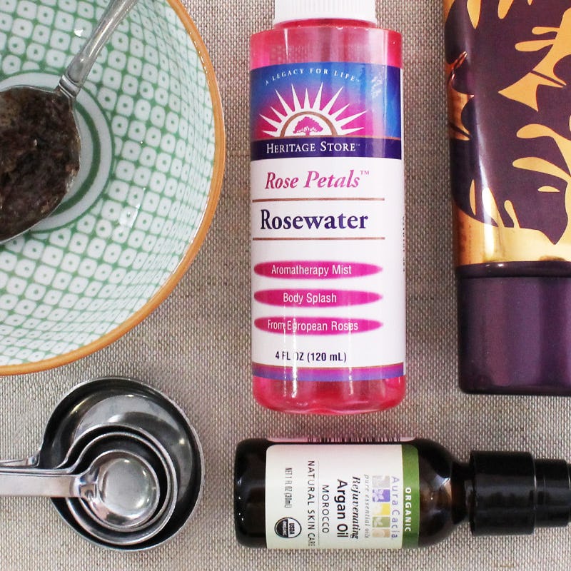 Perfect for a mid-day dose of moisture or a pre/post-makeup pick-me-up, a light face mist is our go-to for feeling refreshed in a flash. Employing skincare benefits from a variety of essential oils, this formula can be mixed and matched to address your specific needs—though a trusty trifecta comes from argan oil, lavender essential oil and rosewater. Mix 6 drops of 100% argan oil and 2 drops of the lavender into a 4 oz. rosewater base, then shake until fully emulsified before each application.