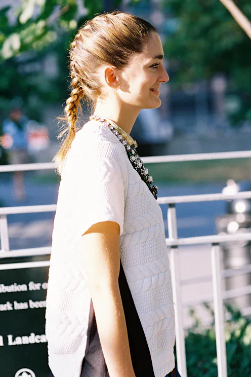 A rainy day is not the ideal occasion to rock cascading curls or sleek, straight locks. Instead, opt for a tight, slicked-back braid whose shape won’t get ruined if it becomes a little damp.