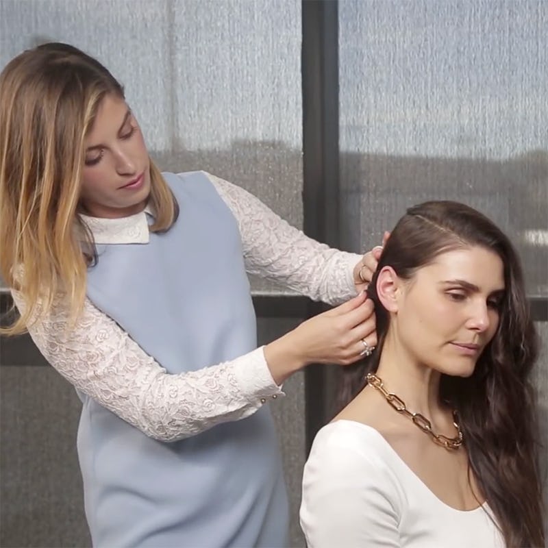We already showed you how to get gorgeous boho texture for your next beachside vacation—but for cocktail hour on the island, perhaps you’re interested in amping up the glam factor. We tapped beauty guru and celebrity makeup artist Sarah Uslan to show you a super quick (and sexy) way to take your hairstyle from day-to-night in a flash.