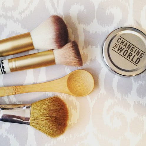 Heat up the oil in the microwave, then dip your brushes into the warm liquid. Dab them on a washcloth or paper towel to clean off the product residue, then rinse with water.