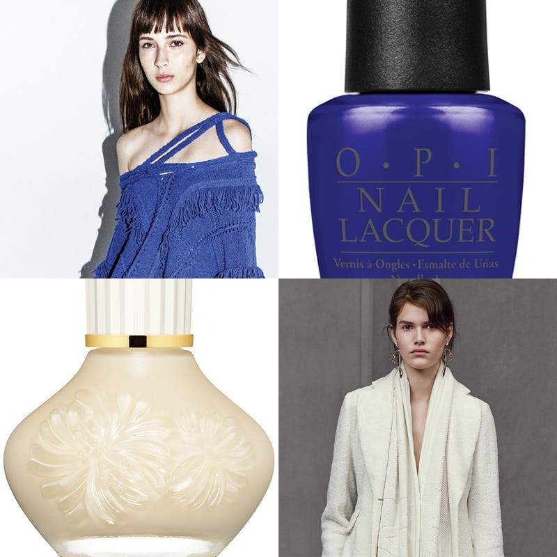 The latest resort collections are brimming with one of our favorite fashion statements: monochromatic dressing. How apropos that these head-to-toe looks in cobalt, stone gray, off-white and blush are exact matches with our favorite nail polish colors for summer. And why not go all out? We fully support matching your nails with an ensemble in the same hue.