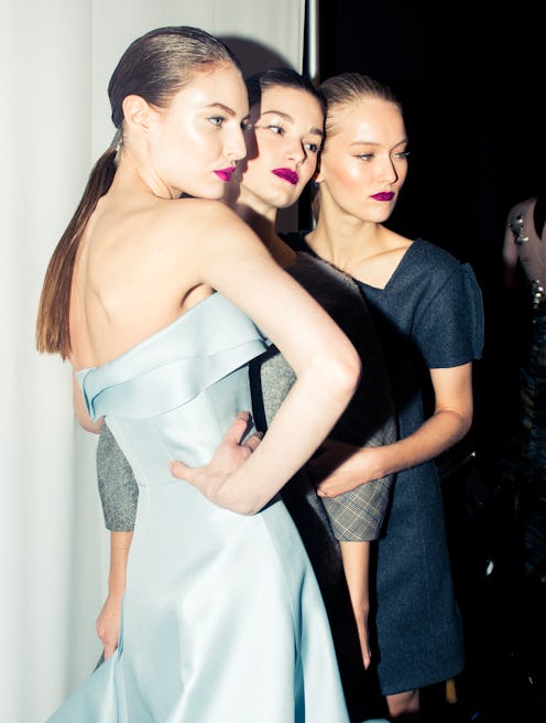 As seen at Carolina Herrera, a berry lipstick with blue undertones is a fresh update to the classic red and it makes your teeth look whiter. Sold!